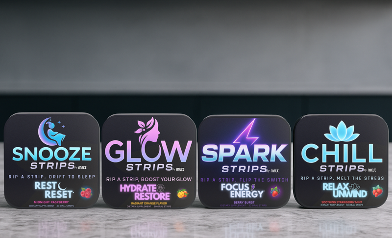 Melt Strips are ultra-thin supplement strips that dissolve instantly on your tongue, delivering nutrients straight into your bloodstream. Each strip provides the same active ingredients as multiple pills or gummies — with none of the fillers, binders, or added sugars. A revolutionary upgrade to supplements: effortless, fast-absorbing, and bioavailable.