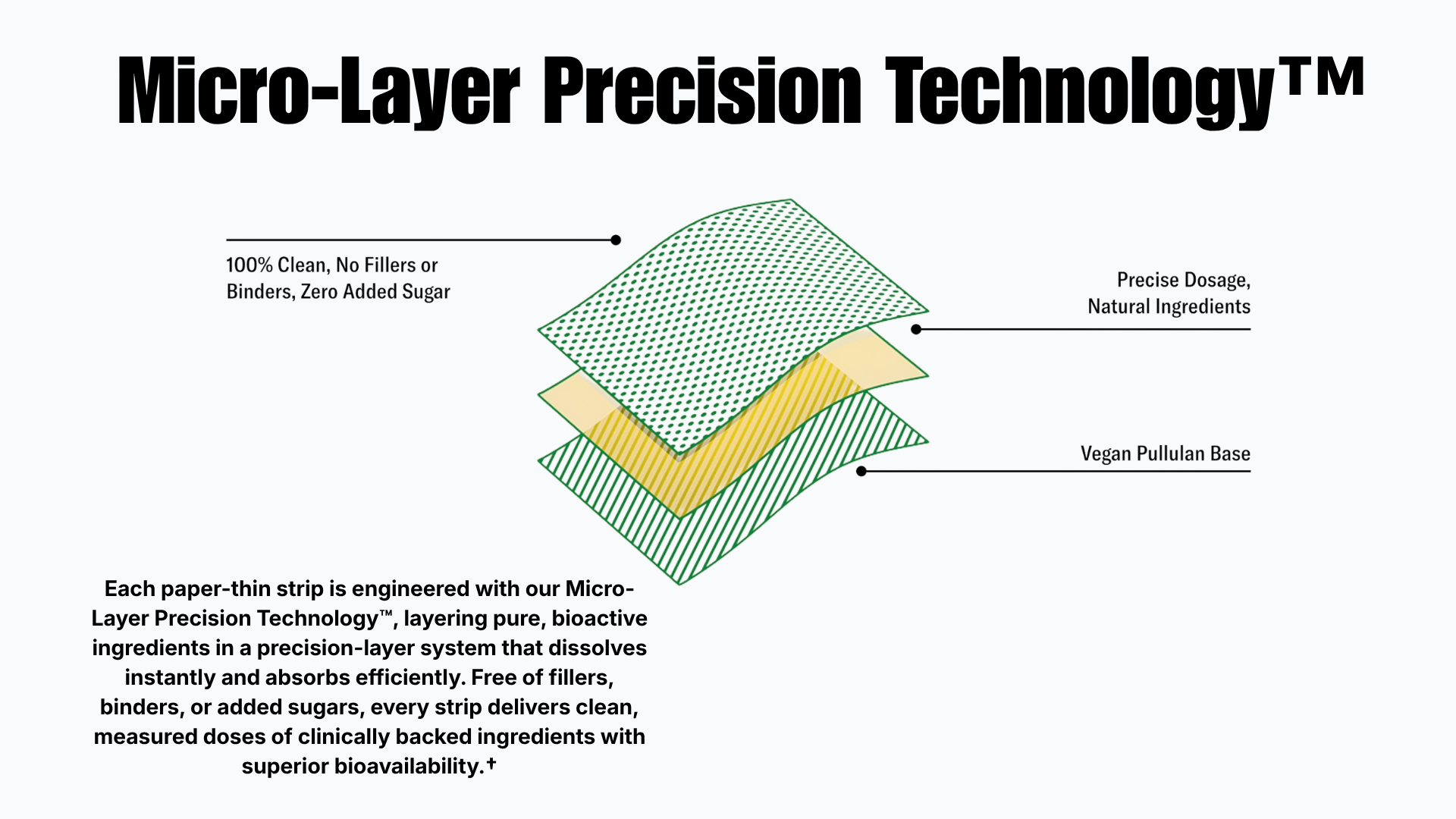 Dissolvable strips melt on your tongue and deliver fast, clean energy through superior bioavailability that outperforms traditional supplements.†